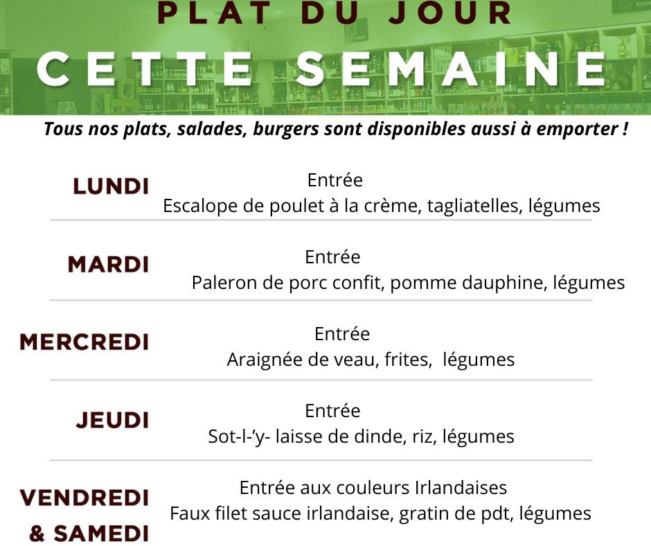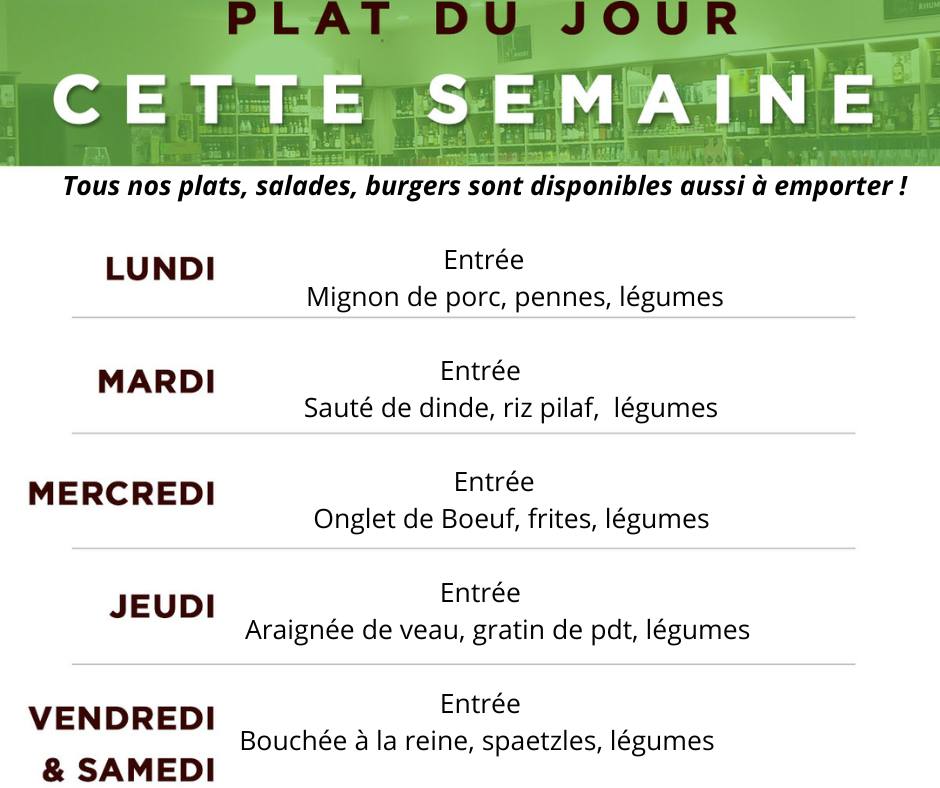 Réservez votre plat du jour à emporter en appelant avant 11h30